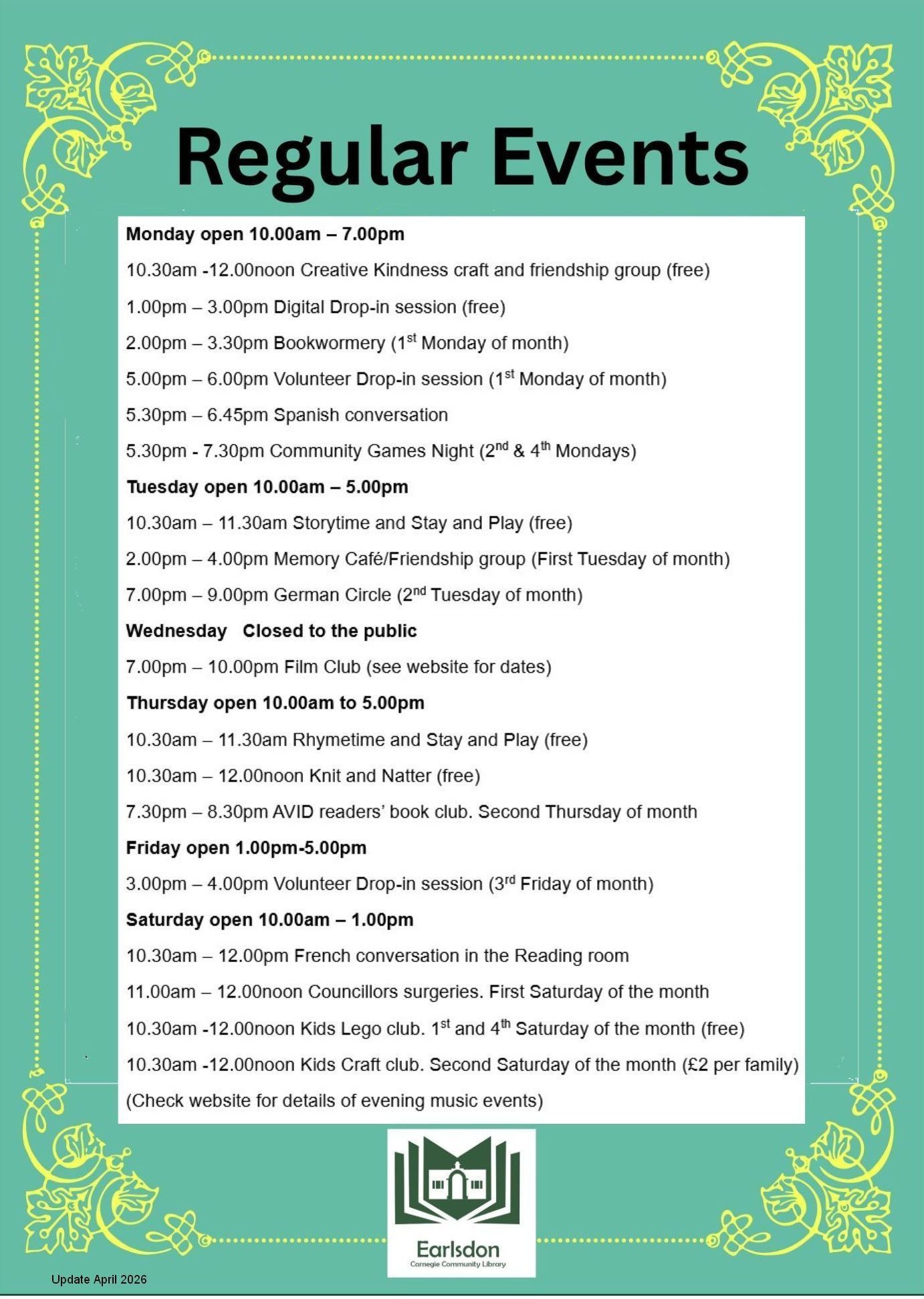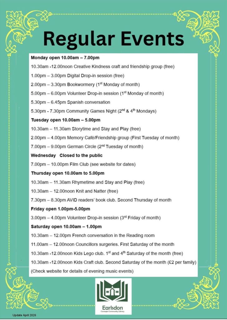 A games night will be a new regular event on the second and fourth Monday of the month from 5.30pm to 7.30pm. Starting January 2026. See below for details
